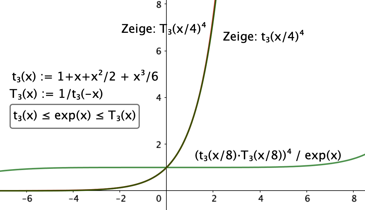 Da die verbreiteten Taschenrechner fast nur Approximationen ausgeben, halte ich das Verständnis von Approximationen für wichtiger als das von Grenzwerten. Ohne Grenzwerte, Vollständigkeit und Stetigkeit kommt man - unter Betonung von Approximationen - bis zu den Ableitungen der rationalen Funktionen und zu den Differentiationsregeln. Danach braucht man für Umkehrfunktionen, Exponentialfunktionen, trigonometrische Funktionen zwingend die Vollständigkeit und damit Grenzwerte. Siehe dazu Text A3. Unter meinen Kollegen finden explizit nur der Analytiker Thomas Sonar (Sein Schulkommentar: Der langsame Tod der Analysis (2012)) und der Geometer Sebastian Hensel, dass dies ein guter Vorschlag für die Schule ist. Meine Erstsemester fanden das im WS 2002/3 auch. |